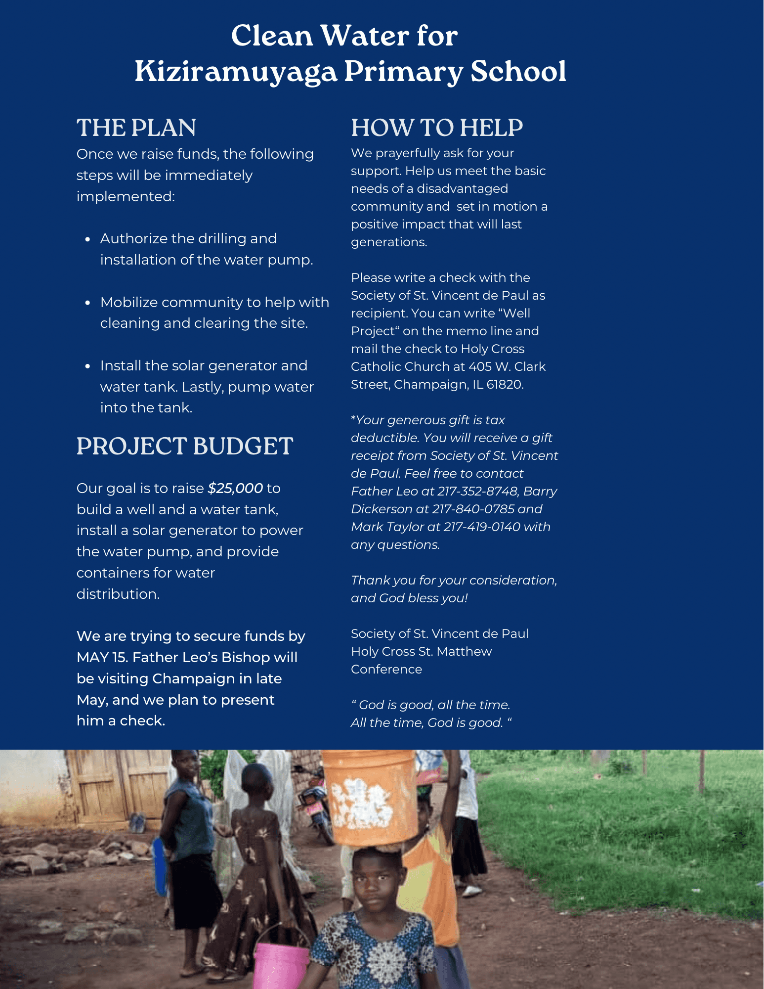 We needed to raise $25K for a water well. My colleagues had already raised 2/3 of it.